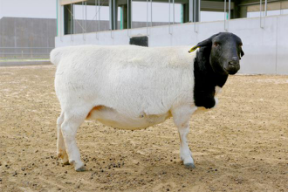 杜泊肉用绵羊原产于南非,是由有角陶赛特羊和波斯黑头羊杂交育成,是世界著名的肉用羊品种。根据其头颈的颜色,分为白头杜泊和黑头杜泊两种。这两种羊体驱和四肢皆为白色,头顶部平直、长度适中,额宽,鼻梁微隆,无角或有小角根,耳小而平直,既不短也不过宽。颈粗短,肩宽厚,背平直,肋骨拱圆,前胸丰满,后躯肌肉发达。四肢强健而长度适中,肢势端正。整个身体犹如一架高大的马车。杜泊绵羊分长毛型和短毛型两个品系。长毛形羊生产地毯毛,较适应寒冷的气候条件;短毛型羊被毛较短(由发毛或绒毛组成),能较好地抗炎热和雨淋,在饲料蛋白质充足的情况下,杜泊羊不用剪毛,因为它的毛可以自由脱落。杜泊羊年剪毛1~2次,剪毛量:成年公羊2~2.5kg,母羊1.5~2kg;被毛多为同质细毛,个别个体为细的半粗毛,毛短而细,春毛6.13cm,秋毛4.92cm,羊毛主体细度为64支,少数达70支或以上;净毛率平均50%~55%。